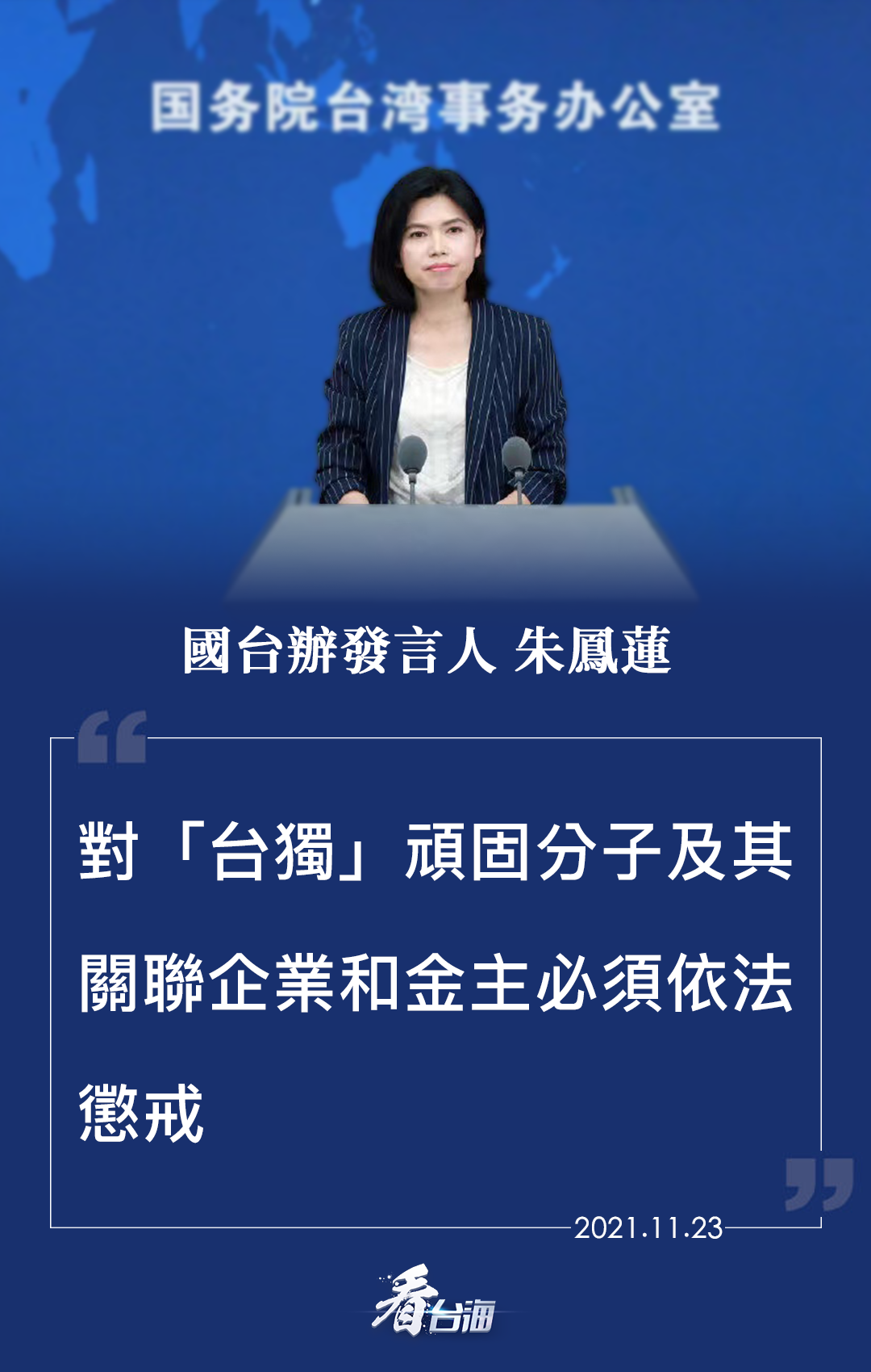 11月22日,上海、江蘇等省市執(zhí)法部門對(duì)臺(tái)灣遠(yuǎn)東集團(tuán)在當(dāng)?shù)赝顿Y企業(yè)存在違法違規(guī)行為進(jìn)行了查處。消息一出,立即引發(fā)網(wǎng)絡(luò)熱議。對(duì)此,國(guó)臺(tái)辦發(fā)言人朱鳳蓮再次強(qiáng)調(diào),對(duì)“臺(tái)獨(dú)”頑固分子及其關(guān)聯(lián)企業(yè)和金主必須依法懲戒。“吃飯?jiān)义仭钡闹С帧芭_(tái)獨(dú)”者必須付出代價(jià)!