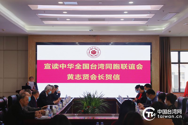 閩南師范大學文學院院長黃金明宣讀了全國臺聯黨組書記、會長黃志賢的賀信。(圖片來源:閩南師范大學 張長基 攝)