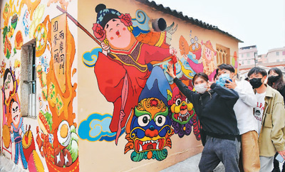 臺灣青年在福建用創(chuàng)意涂鴉活化古村落。中新社記者 張 斌攝