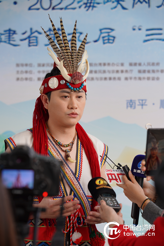 “期許這次云端三月三之約,展現(xiàn)兩岸民族文化的美美與共。”臺灣阿美青年楊品驊身著民族盛裝亮相,他對中新網(wǎng)記者表示,臺灣也有很多族人致力于部落營造,但民族文化的傳承需要依賴更大的市場,“來到福建,不管是部落文創(chuàng)品還是農(nóng)特產(chǎn)品,都走得更遠(yuǎn)。”