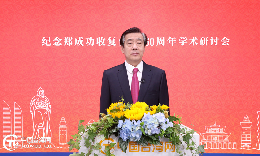 在海峽兩岸隆重紀念偉大的民族英雄鄭成功驅逐荷蘭殖民者、收復祖國寶島臺灣360周年之際,兩岸學術界線下線上集聚一堂,共同紀念鄭成功的偉大歷史功績,賡續愛國主義傳統,共同推動兩岸關系和平發展、推進祖國完全統一,具有重要意義。我謹代表中共中央臺辦、國務院臺辦,對研討會的召開表示熱烈祝賀,向出席會議的各位嘉賓、專家學者致以誠摯問候!