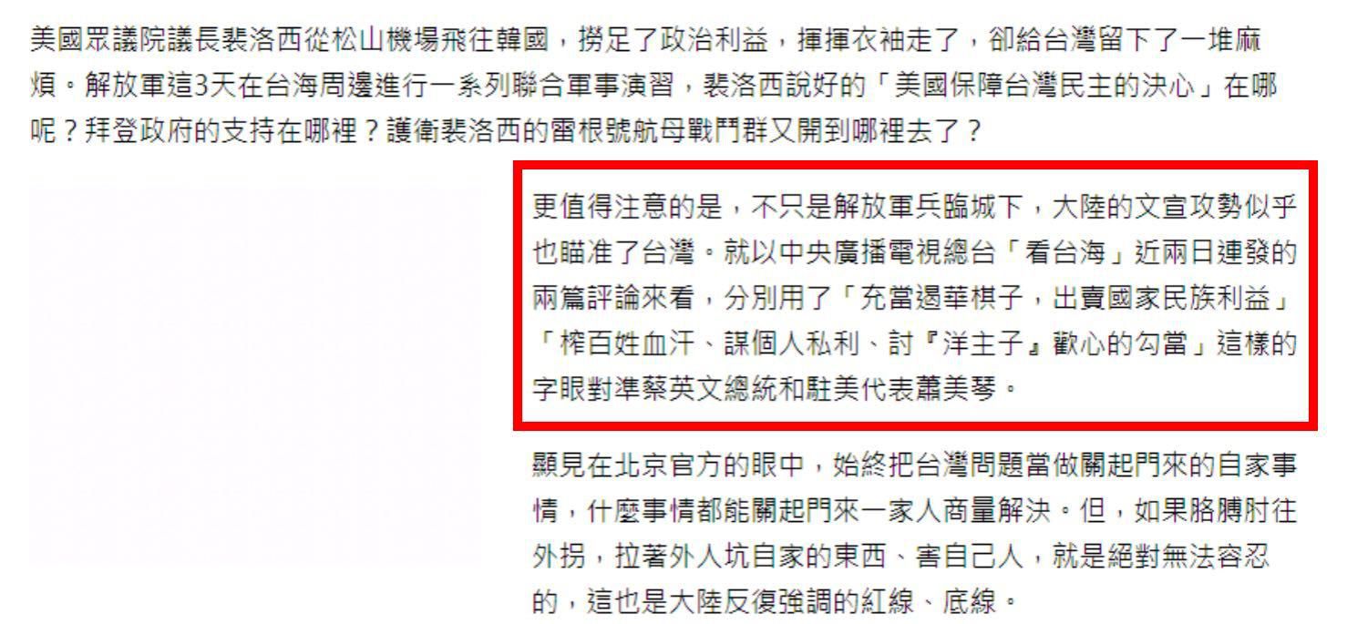 臺灣中時新聞網(wǎng)刊發(fā)評論文章截圖