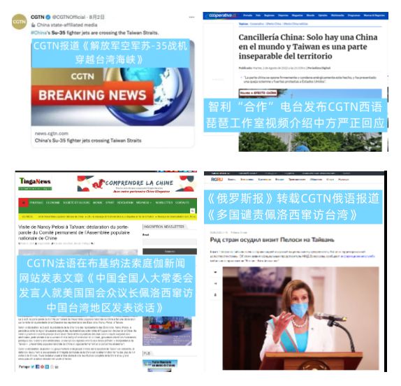 中央廣播電視總臺持續(xù)關(guān)注佩洛西竄訪事件,各中心、部門聯(lián)動,迅速反應(yīng),總編室、新聞中心、CGTN、軍事節(jié)目中心、新聞新媒體中心、歐拉中心、亞非中心、港澳臺中心、華語中心、各海外總站、國際視頻通訊社等聞令即發(fā),截至8月5日晚,多位主持人、記者、評論員在海外主流媒體近百次密集發(fā)聲,44個語種報道獲全球超3000家媒體廣泛轉(zhuǎn)載轉(zhuǎn)引。總臺以多平臺多渠道遞進(jìn)式的海外報道,就中國內(nèi)部事務(wù),向世界嚴(yán)正聲明中國人民的立場及態(tài)度。