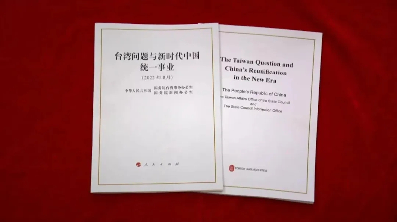 2022年8月10日,國務院臺灣事務辦公室、國務院新聞辦公室發表《臺灣問題與新時代中國統一事業》白皮書。中國臺灣網供圖