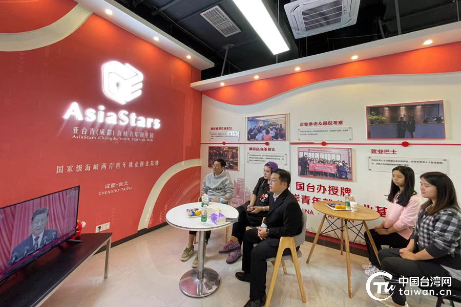 成都臺青集體觀看黨的二十大開幕會。(中國臺灣網發)