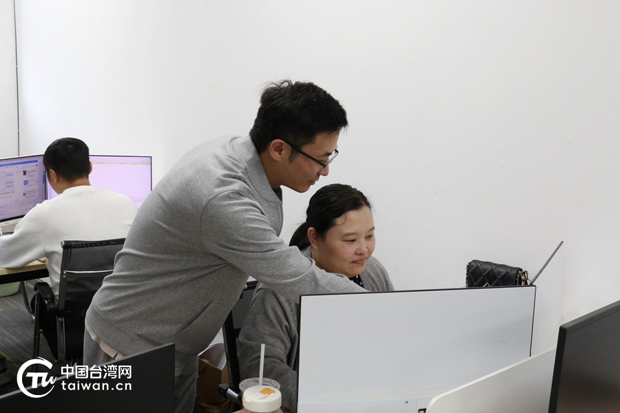 張博森與同事交流業務。(中國臺灣網 尹賽楠 攝)