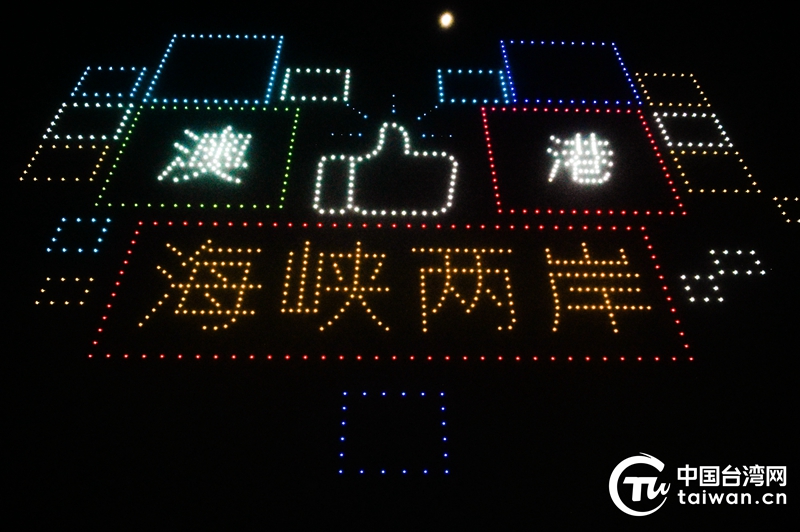 無人機隊擺出“海峽兩岸”字形。(中國臺灣網 發)