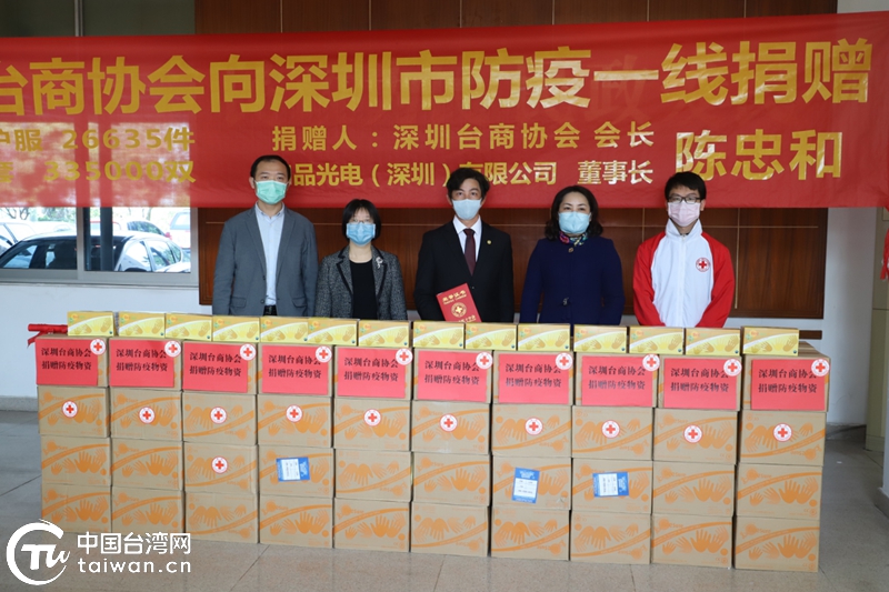 2020年,深圳臺商協會會長向深圳抗疫一線捐贈防疫物資。(中國臺灣網發)