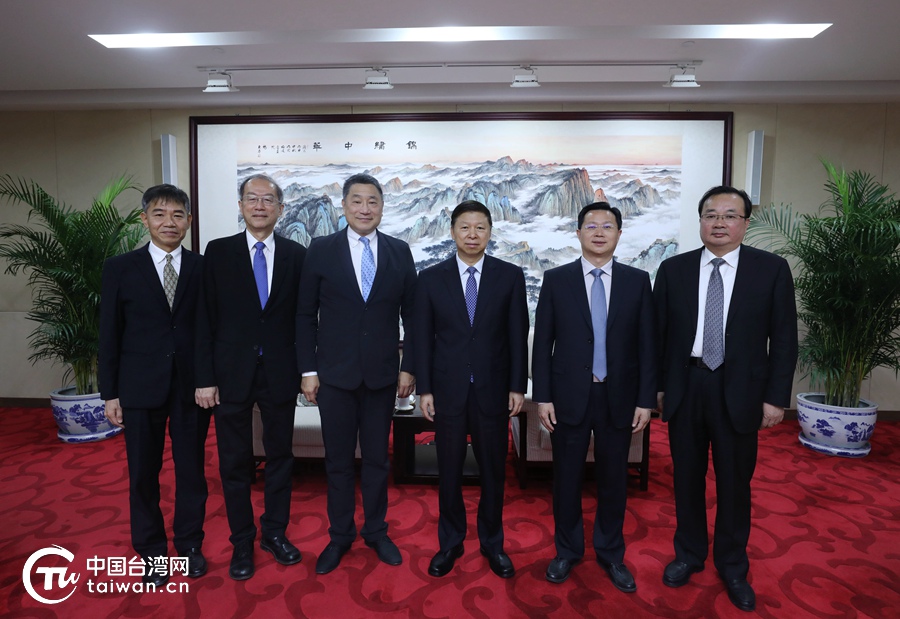中共中央臺(tái)辦、國(guó)務(wù)院臺(tái)辦主任宋濤與臺(tái)泥集團(tuán)董事長(zhǎng)張安平一行合影。(中國(guó)臺(tái)灣網(wǎng) 尹賽楠 攝)