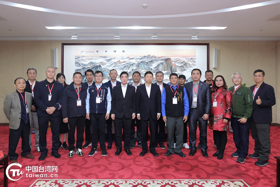 宋濤與臺灣村里長聯(lián)合總會參訪團一行合影。(中國臺灣網(wǎng) 尹賽楠 攝)