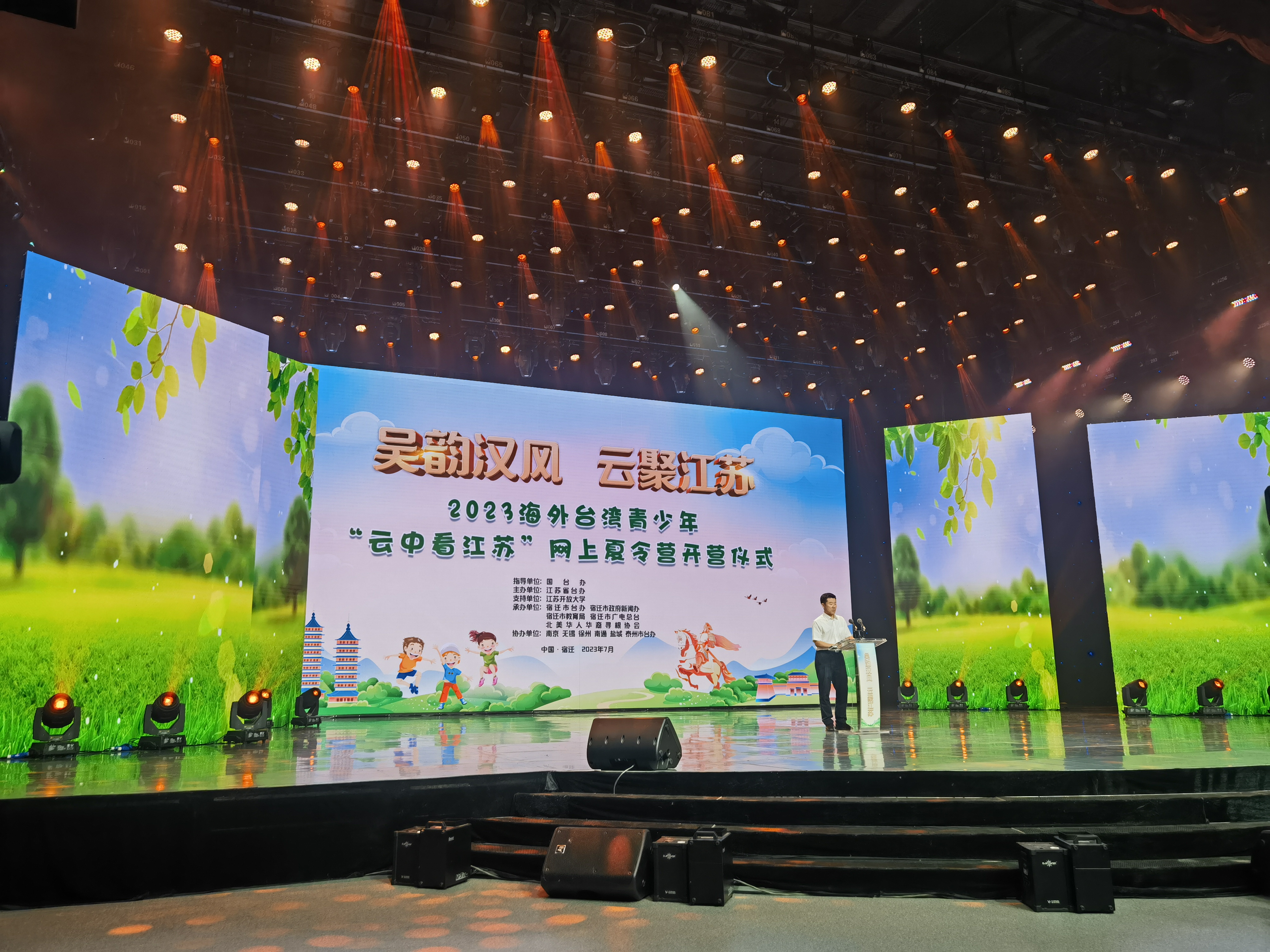 交匯點訊 7月21日,“吳韻漢風 云聚江蘇”2023海外臺灣青少年“云中看江蘇”網上夏令營在宿遷開營。來自美國、加拿大、英國、德國、菲律賓、馬來西亞、越南等國家的近百名海外臺灣青少年、老師、家長們及數千名宿遷本地學生參加線上開營儀式。
