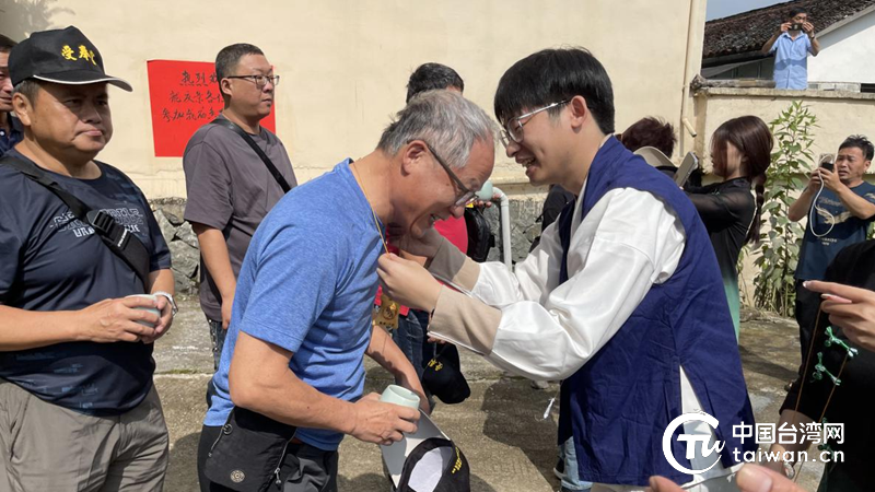 品嘗菇鄉好茶、獲贈祈福福袋(圖片來源:麗水市龍泉市臺辦)