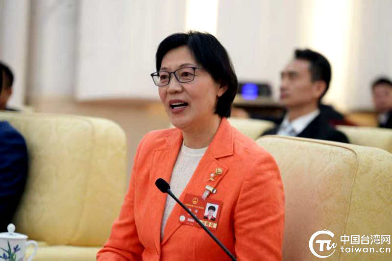 林青代表在十四屆全國人大三次會議臺灣省代表團全體會議結束后回答記者提問。(中國臺灣網記者 麥旭濤 攝)