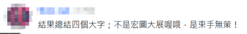 還有人嘲諷說,“什么時候恢復十講?我想笑”“結果總結四個大字,不是宏圖大展喔哦,是束手無策!”“功力越來越好了!除了青鳥會飛出來一招,還練就了‘黑天鵝’,下一招是什么鳥獸啊?”。