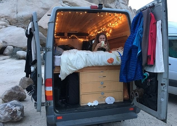 卡婭在自己的車中安裝了木抽屜,并且在車頂裝配上行李架。她十分享受房車旅行的生活,在車里做飯,在荒野爬山,并且將這些點滴都在日記中記錄下來。“對我來說,住在車中就是我的理想生活。”卡婭表示。