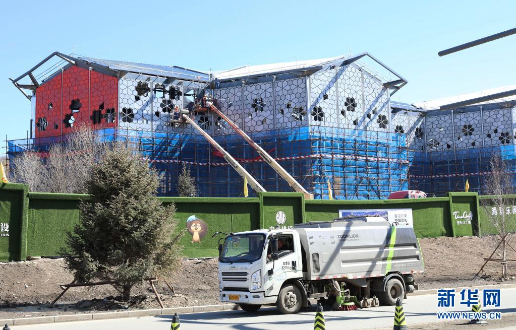3月27日,工人在張家口市崇禮區太子城冰雪小鎮施工。新華社發(武殿森 攝)