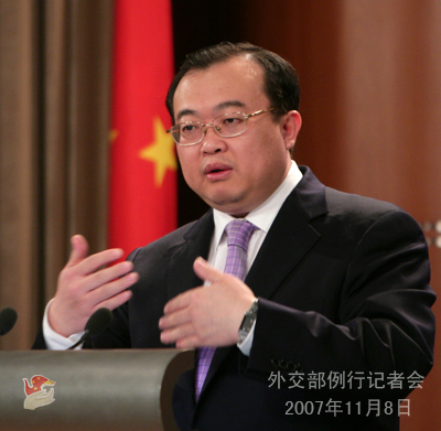 2007年11月8日下午,外交部發言人劉建超舉行例行記者會,就六方會談、巴基斯坦局勢、阿富汗發生自殺性炸彈襲擊、伊朗核問題等回答記者提問。