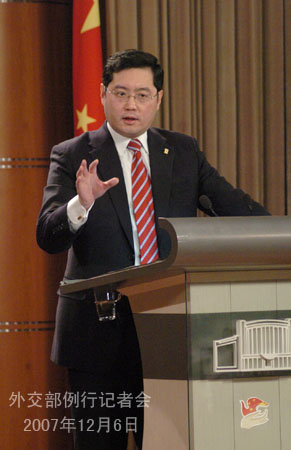 2007年12月6日,外交部發言人秦剛舉行例行記者會,就六方會談、伊朗核問題、中日關系、聯合國氣候變化會議等回答記者提問。