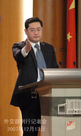 2007年12月13日下午,外交部發言人秦剛舉行例行記者會,就六方會談、馬其頓國名、蘇丹、中日關系等問題回答記者提問。