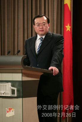2008年2月26日,外交部發言人劉建超舉行例行記者會,就美國國務卿賴斯訪華、伊朗核問題、輸日水餃事件等答記者問。