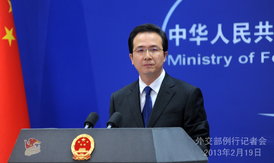 2013年2月19日,外交部發言人洪磊主持例行記者會。