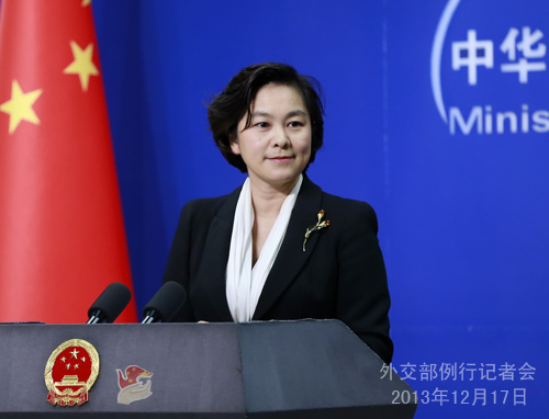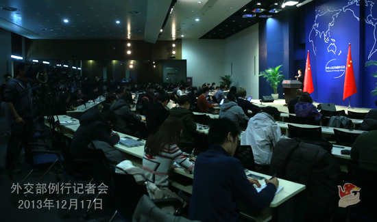2013年12月17日,外交部發言人華春瑩主持例行記者會。