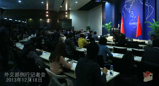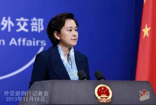 2013年12月18日,外交部發言人華春瑩主持例行記者會。