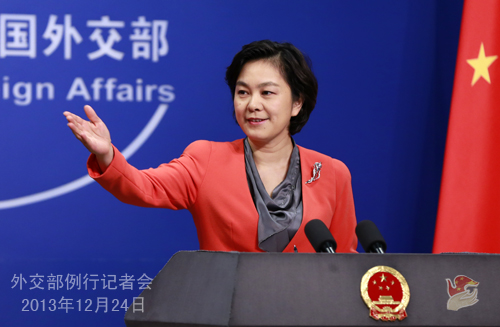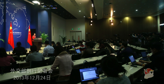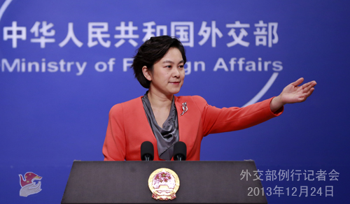 2013年12月24日,外交部發言人華春瑩主持例行記者會。