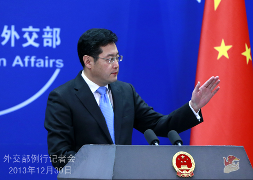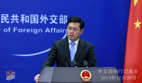 2013年12月30日,外交部發言人秦剛主持例行記者會。