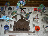 臺灣民主紀念館(原中正紀念堂)開幕典禮舉行,紀念館主建筑物的二樓銅像館大門從5月封館后,終于在今天上午11點多敞開,蔣介石銅像維持原貌,但整個大廳被裝飾了巨幅歷史照片、垂掛風箏以及達悟漁舟紙做模型。中午12點開放參觀后,民眾反應兩極,在大門口各自表態,還一度引發沖突。
