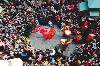 2月8日,杭州河坊街年俗活動再現高潮,民間藝人沿南宋御街、河坊街,為市民和游客展示了精彩的舞獅、鑼鼓、高蹺、頂缸、耍刀等絕活表演,營造了“玉兔呈祥·喜迎春”的濃郁年俗文化氛圍。里爾攝(人民圖片)