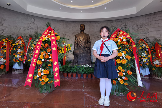 圖為銅仁市逸群小學學生為參觀者講解周逸群烈士事跡。人民網記者 黃玉琦攝