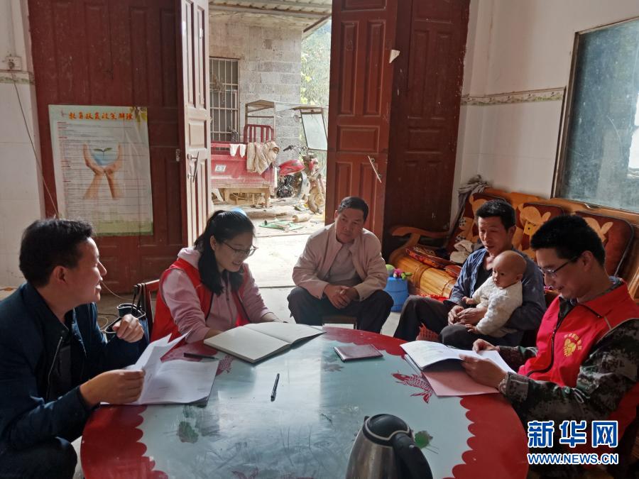 這是黃文秀(左二)生前下屯訪問貧困戶的資料照片。新華社發