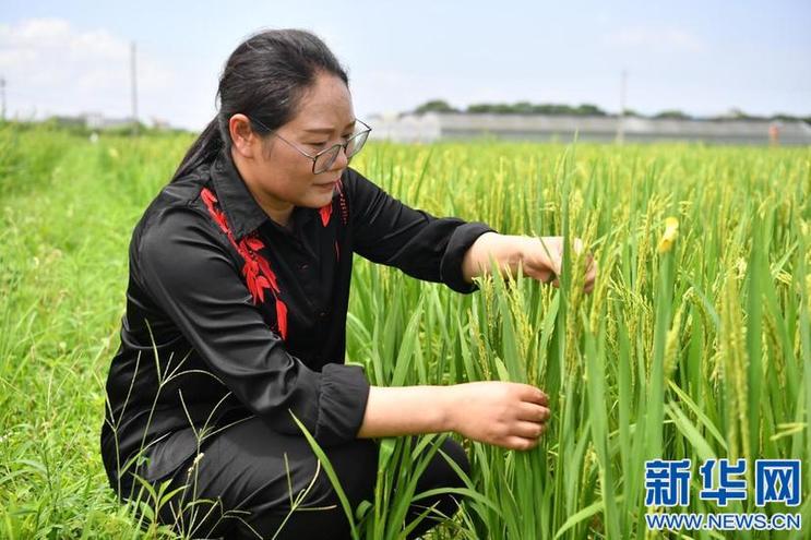 黃聲菊正在查看水稻生長(zhǎng)情況。新華網(wǎng)發(fā)