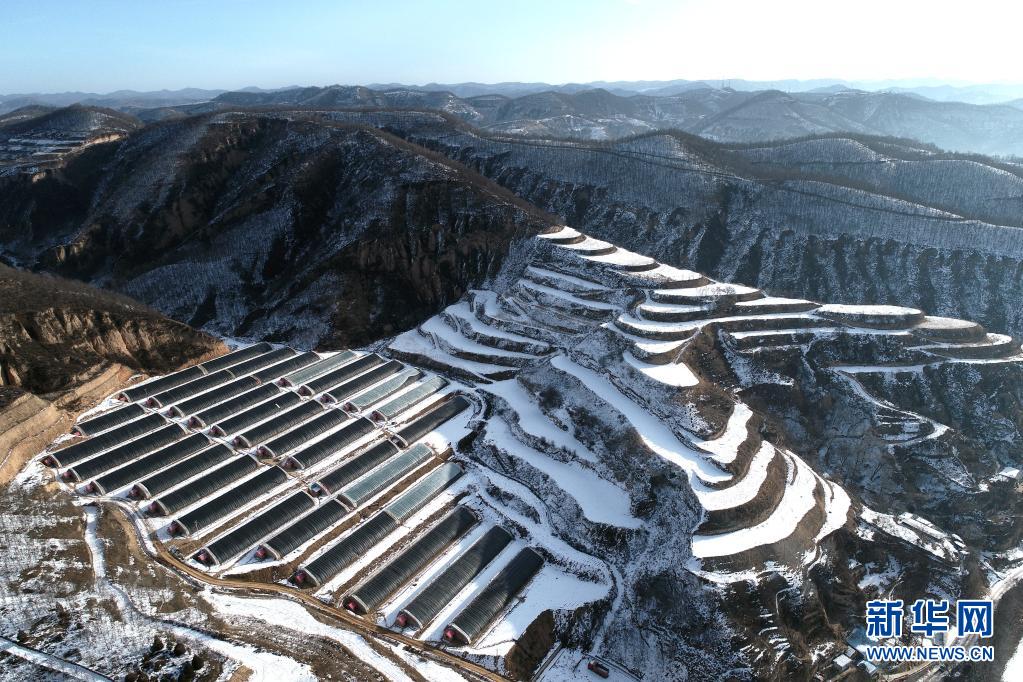這是2020年1月20日拍攝的延安市寶塔區青化砭鎮梁村溫室大棚(無人機照片)。新華社記者 張博文 攝