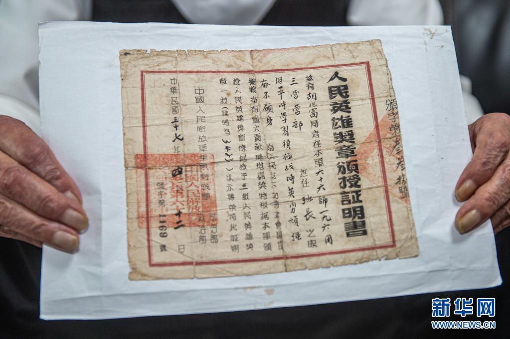 這是胡兆富的人民英雄獎(jiǎng)?wù)骂C授證明書(shū)(5月18日攝)。