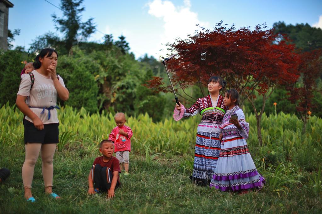 海雀村的孩子正在拍攝社交媒體視頻(2020年8月4日攝)。新華社記者劉續攝