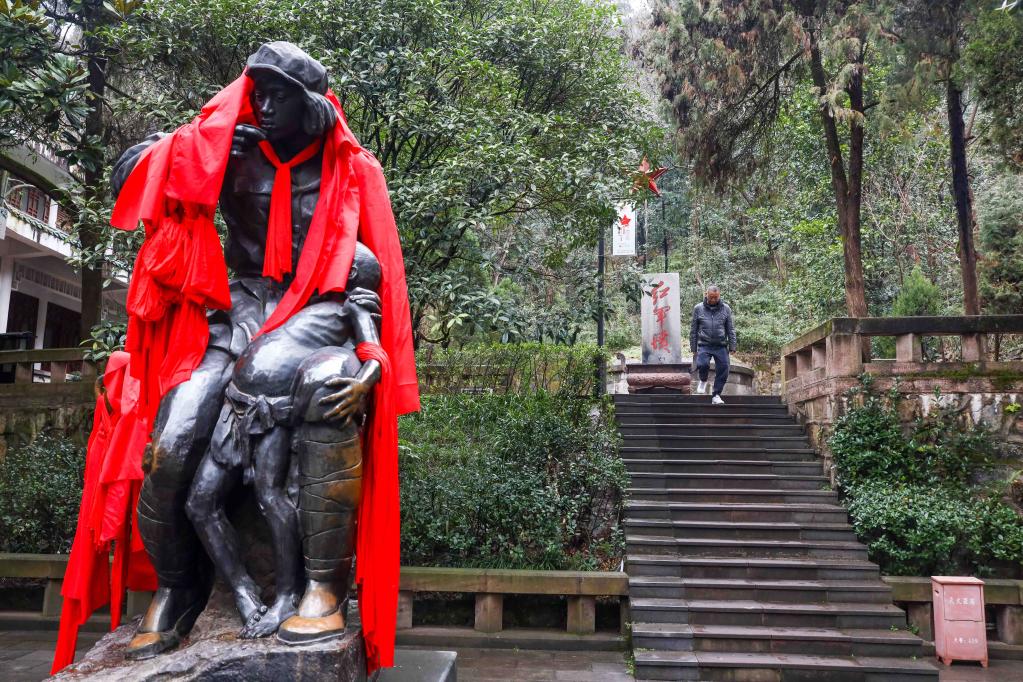 這是遵義紅軍烈士陵園內的紅軍衛生員雕像(1月25日攝)。新華社記者歐東衢攝