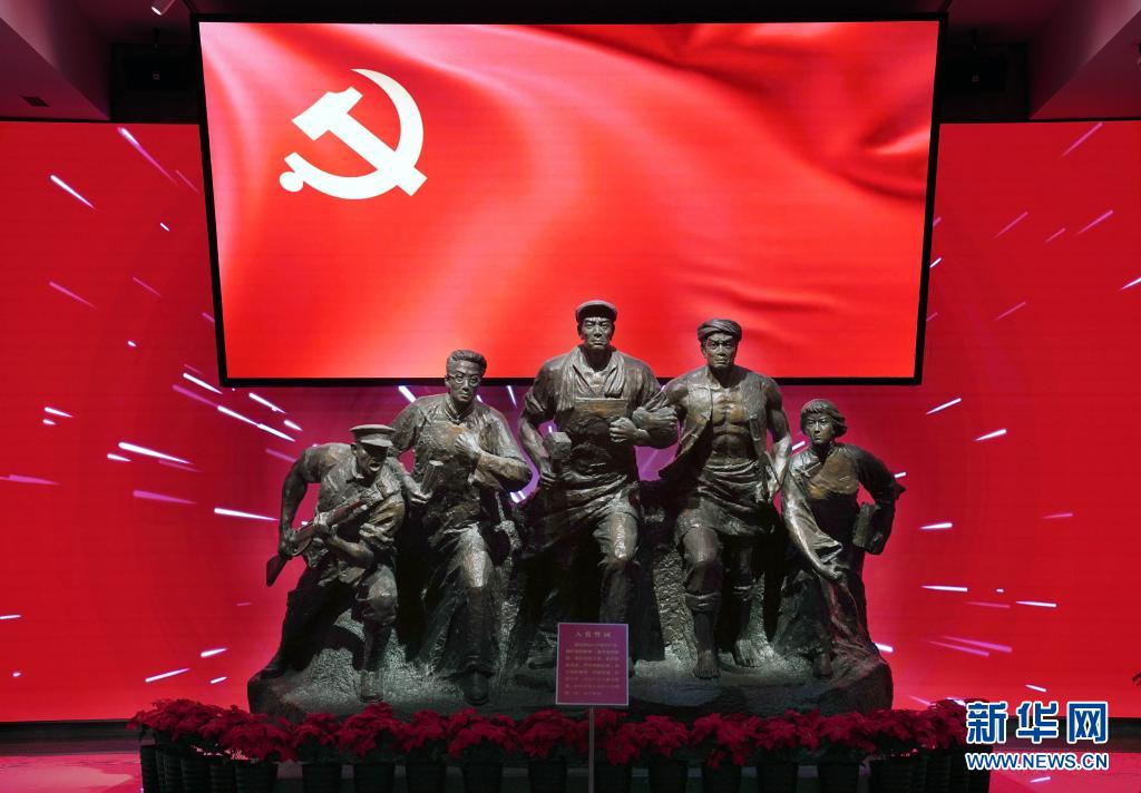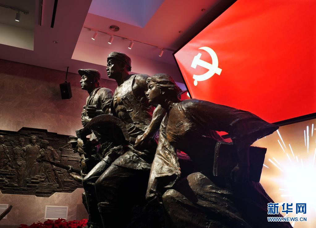 5月31日拍攝的中共四大紀(jì)念館序廳內(nèi)的主題雕塑。新華社記者 劉穎 攝