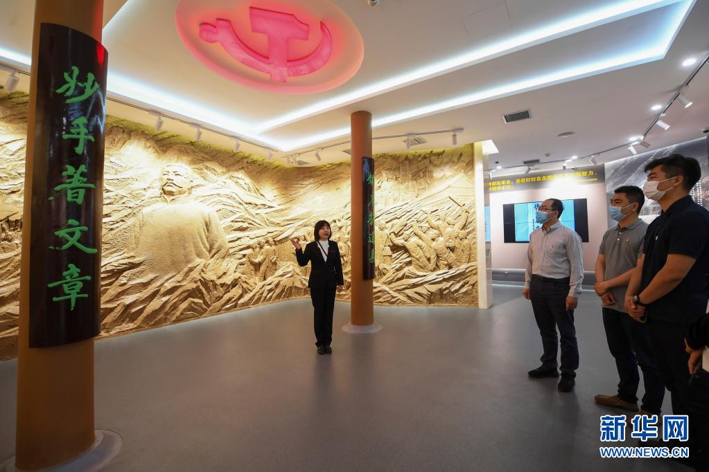 6月1日,在李大釗烈士陵園,講解員為參觀者介紹“不朽的功勛——李大釗生平事跡展”。新華社記者 陳鐘昊 攝