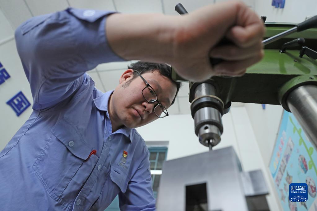 航空工業(yè)沈陽飛機工業(yè)(集團(tuán))有限公司首席技能專家方文墨在方文墨工作室打磨零件(2021年4月12日攝)。新華社記者 楊青 攝