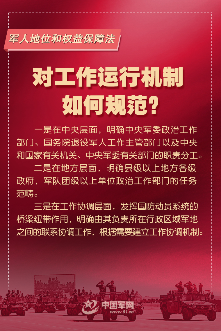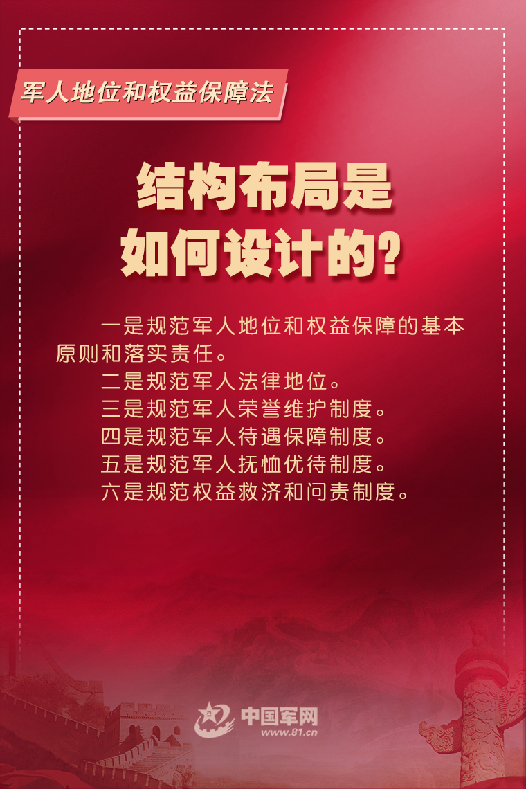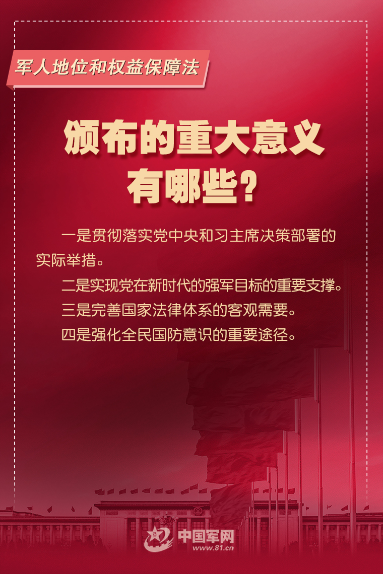 6月10日,十三屆全國人大常委會第二十九次會議表決通過《中華人民共和國軍人地位和權益保障法》,國家主席習近平簽署第八十六號主席令予以公布,自2021年8月1日起施行。這是軍人地位和權益保障的基礎性、綜合性法律,是深化國防和軍隊改革的重要成果。這部法圍繞軍人地位和權益保障的基本原則和基本制度作出了哪些規范?中國軍網推出專家系列解讀,闡釋重要規定內涵和深層考量,快來一起看看吧。