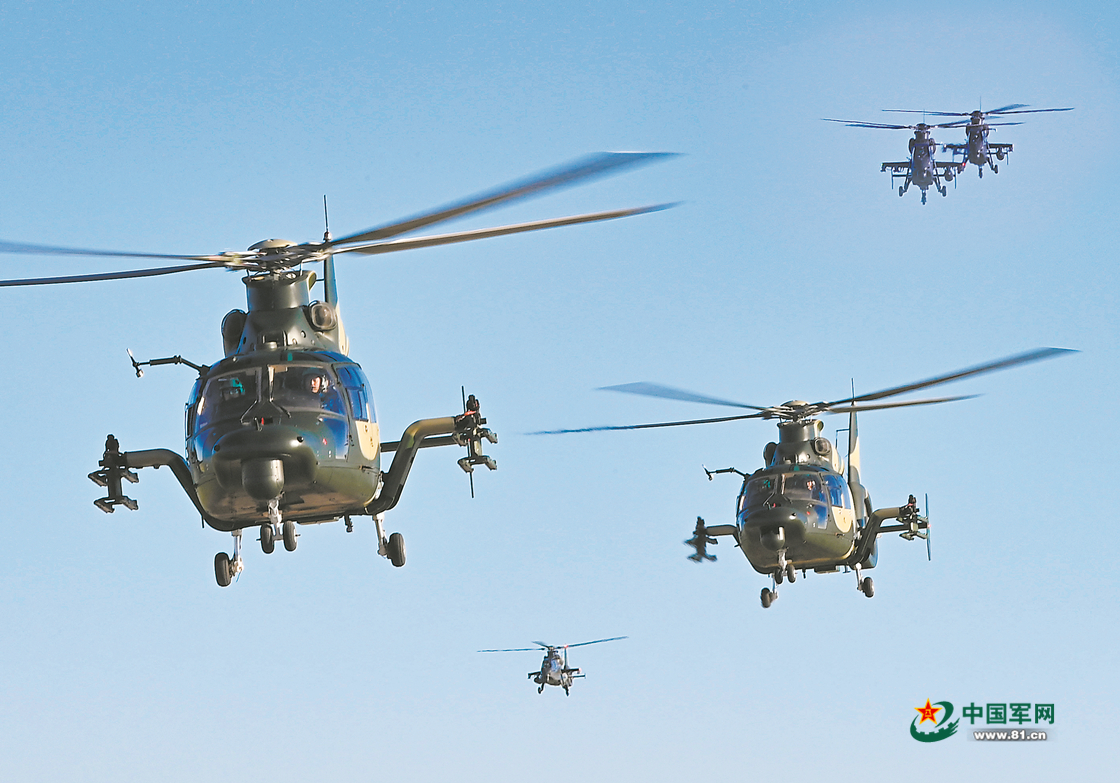 隨著某陸航旅指揮員一聲令下,一架架武裝直升機騰空而起。隱蔽懸停、鎖定目標、果斷擊發……進入作戰地域后,數架直升機交替向“敵”陣地發起火力打擊。