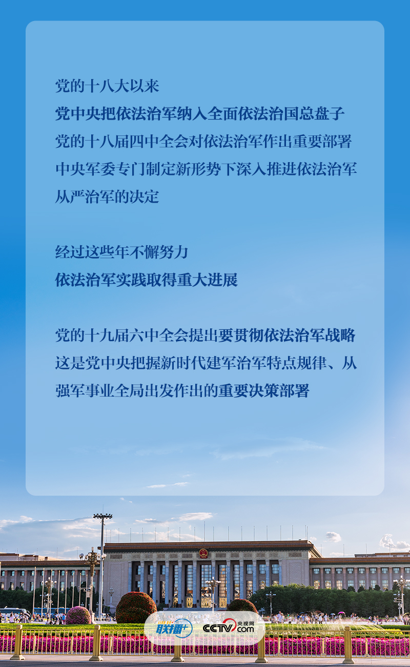 依法治軍,是習近平主席發言的關鍵詞之一。他說:“依法治軍是我們黨建軍治軍的基本方式,是實現黨在新時代的強軍目標的必然要求。要貫徹依法治軍戰略,提高國防和軍隊建設法治化水平,為推進強軍事業提供堅強法治保障。”央視網《聯播+》特梳理講話要點,與您一同學習。