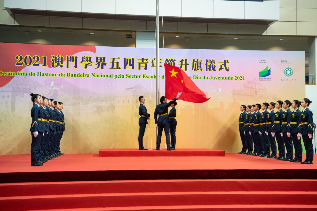 2021年5月4日,澳門學(xué)界舉行青年節(jié)升旗儀式。新華社記者 張金加 攝