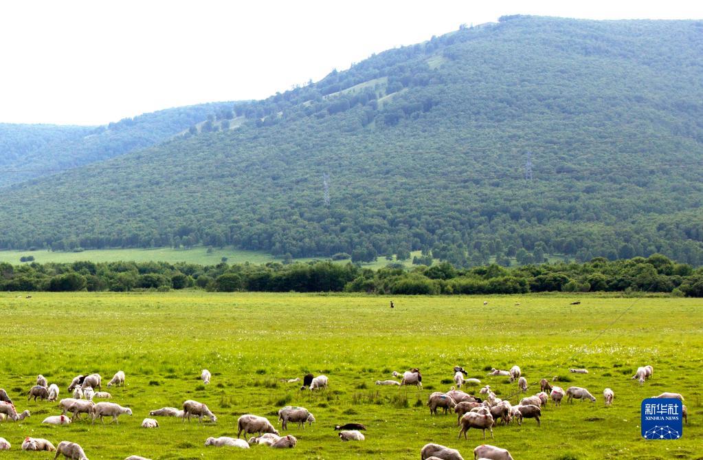 2021年7月15日,羊群在內蒙古錫林郭勒盟東烏珠穆沁旗的草原上悠閑覓食。新華社記者彭源攝
