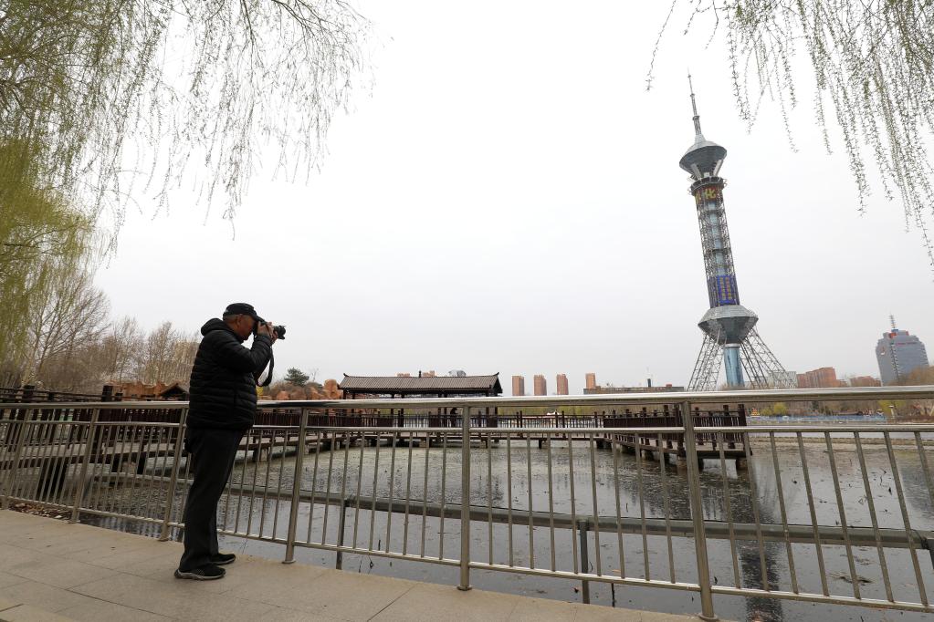 3月18日,王汝春在石家莊市裕華區世紀公園拍照。(受訪者供圖)
