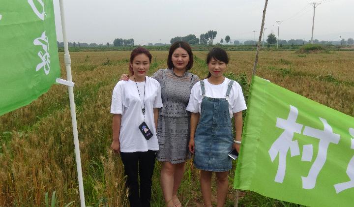 2018年6月 ,王穎(中)和同事在十家子村田間地頭。(受訪者供圖)