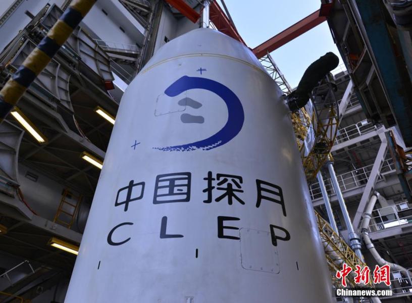 12月1日下午5時(shí),靜臥在勤務(wù)塔中的嫦娥三號。中新社發(fā) 秦憲安 攝