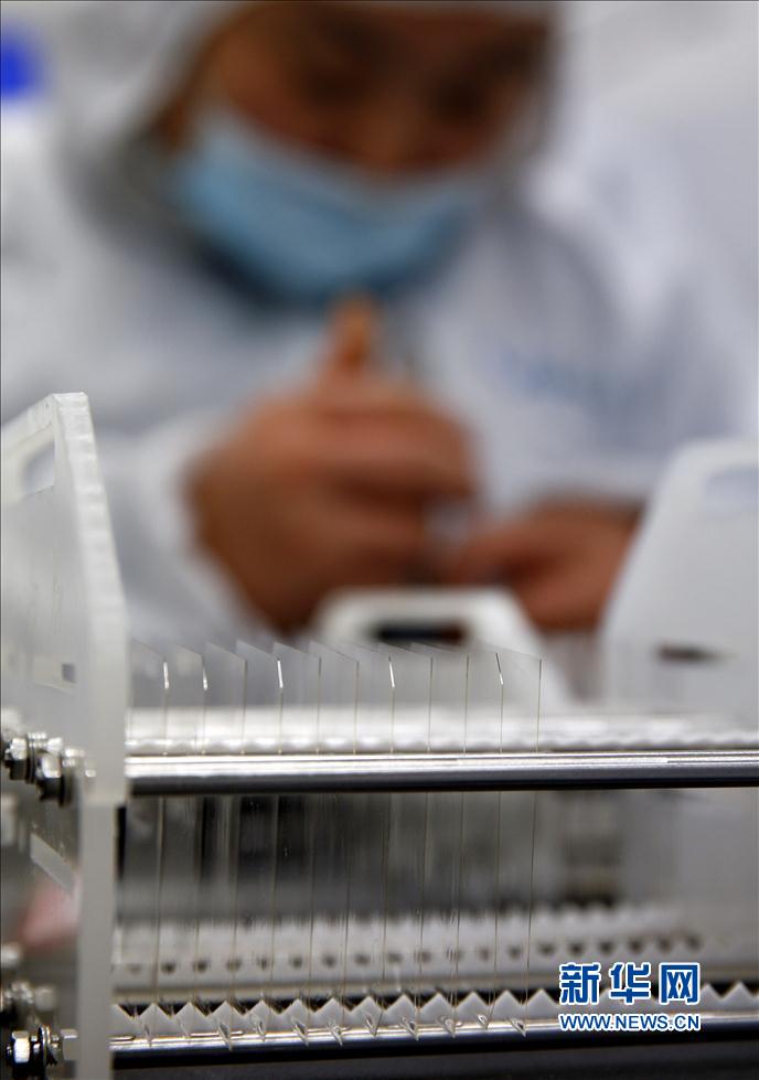 2000年10月,秦皇島市星箭特種玻璃有限公司開始與中國航天科技集團合作,從事空間用抗輻照玻璃蓋片、航天用摻鈰的二次表面鏡(OSR)玻璃基片和高強度抗輻照玻璃蓋片的研發生產,產品先后用于神舟五號至神舟十號,雙星探測、嫦娥一號、二號、三號和天宮一號等多顆衛星與航天器上。目前,該公司被中國航天科技集團指定為抗輻照玻璃蓋片全國唯一合格的供貨方。新華社記者楊世堯攝